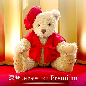 還暦に贈るテディべア プレミアム【名前/日付/メッセージ入れ】還暦祝い テディべア 還暦 かんれき プレゼント 贈り物 ギフト 女性 男性 母 父 ちゃんちゃんこ 退職祝い ぬいぐるみ 名入り 名前入り 記念品 敬老の日【送料無料】