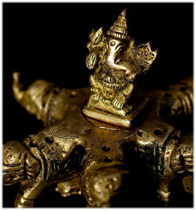 【12本立て ブラス製 ゾウの台座 ガネーシャ お香立て】インドの神様 ガネーシャ 置物 仏像 フィギュア 学問 神様 アジアン雑貨 雑貨 香炉 仏具 (お香立て/お香)香炉 インドネシア(アジアン雑貨 インテリア アジアン おしゃれ 縁起物 アジア雑貨)